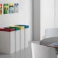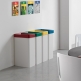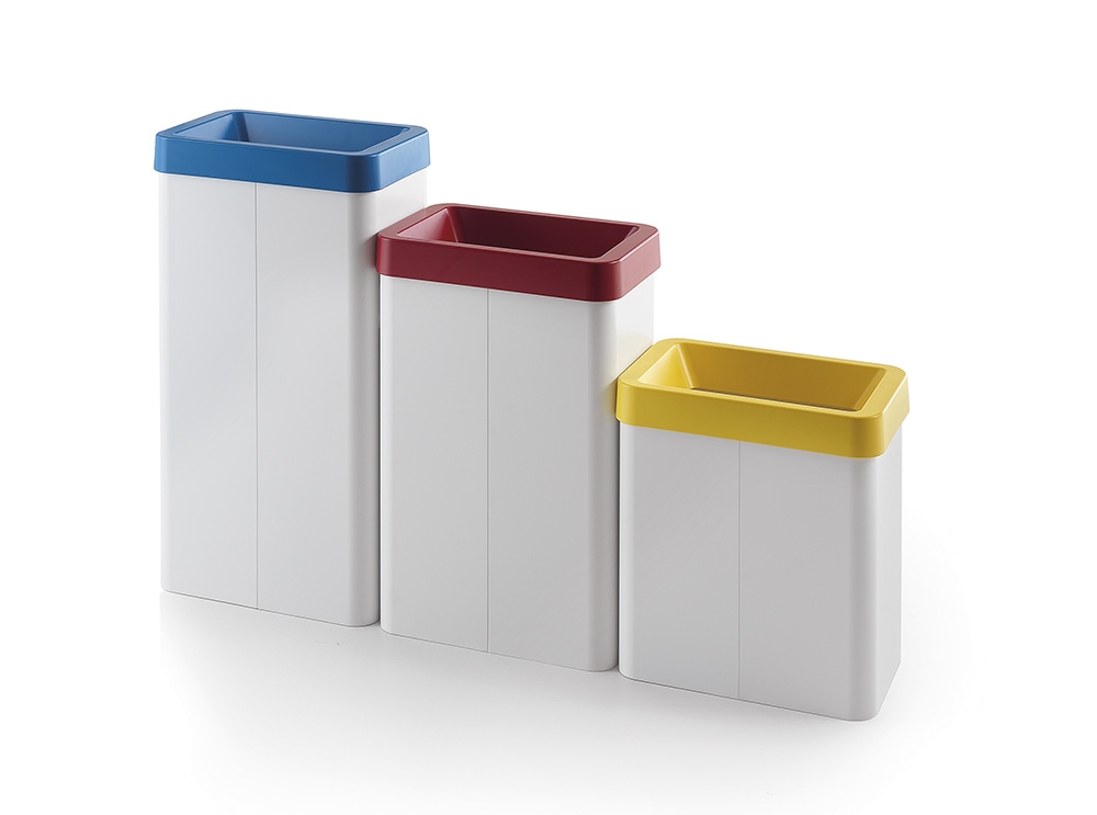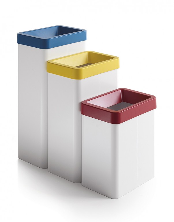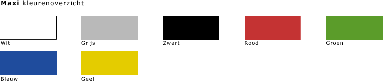 Maxi is verkrijgbaar in wit (voor de versie van 50, 70 en 85 liter) of metaalgrijs (voor de versie van 70 en 85 liter) gecoat staal met naar keuze de afvalzakhouder in dezelfde kleur of in rood, groen, blauw of geel.