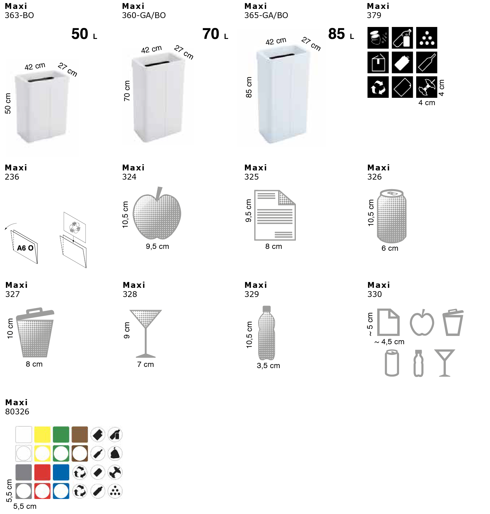 Maxi is een stalen afvalbak, bedoeld voor gescheiden inzameling. De bakken zijn voorzien van een afneembare kunststof afvalzakhouder.