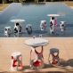 Tafel XL, H = 105cm. met diverse bladen mogelijk: ø 70cm, ø 90cm.