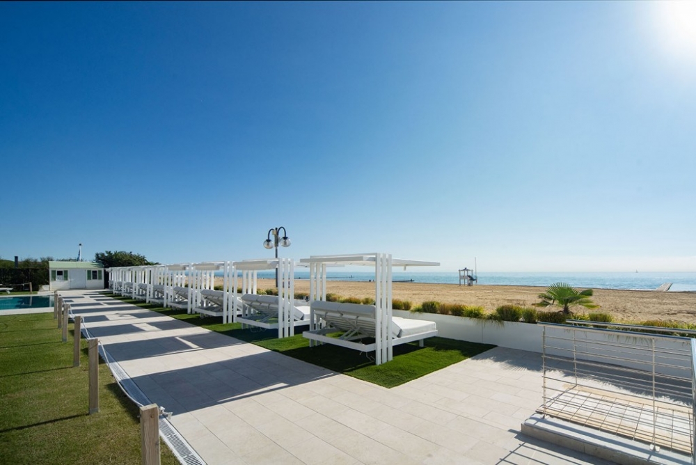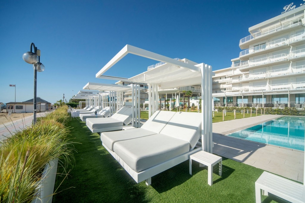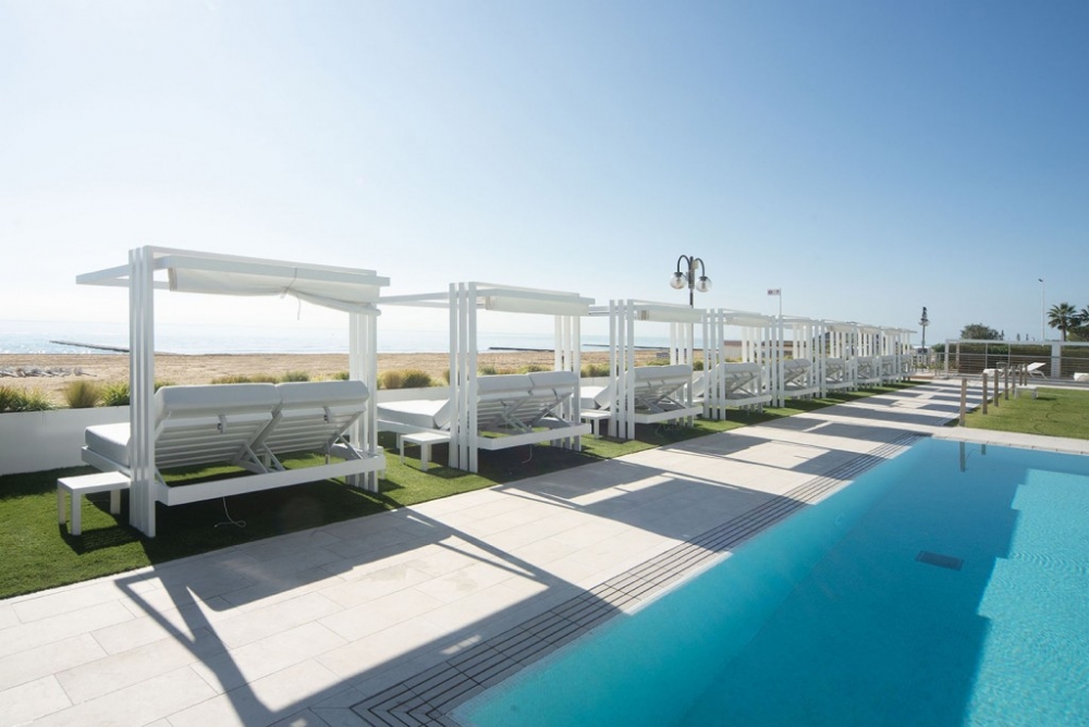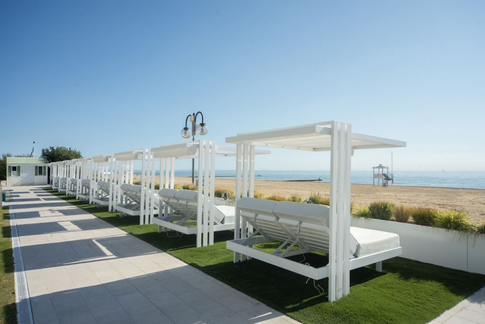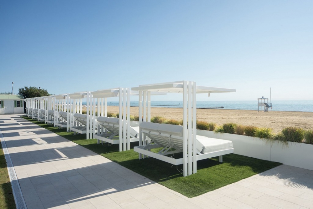 Soletto, het tuinbed, is een authentiek toevluchtsoord voor wie in alle comfort wil ontspannen en een uniek moment in de buitenlucht wil ervaren. Het heeft een lineair, bijna minimalistisch ontwerp, met geometrische vormen die een moderne en tijdloze sfeer creëren. De steunpoten, die het bed een zwevend uiterlijk geven, en de steunkolommen die het omlijsten alsof Soletto een schilderij is, geven extra waarde aan het algehele uiterlijk. Het onderscheidende kenmerk ligt in de open structuur die een gevoel van vrijheid biedt en een panoramisch uitzicht biedt op de omgeving. Het aluminium frame en de waterafstotende stoffen van de dubbele matras met verstelbare rugleuning maken het perfect voor elke buitenomgeving, of het nu bij het zwembad, in de tuin of op het strand is. Daarom is het ideaal voor contractomgevingen of huiselijke buitenruimtes.
