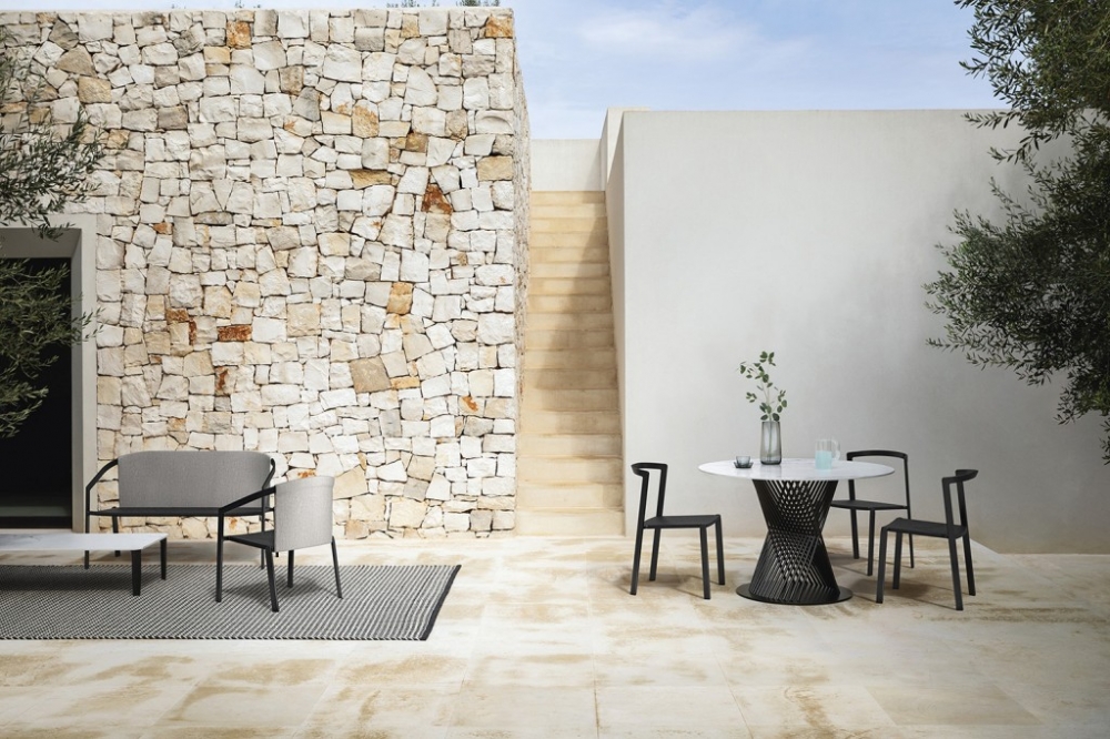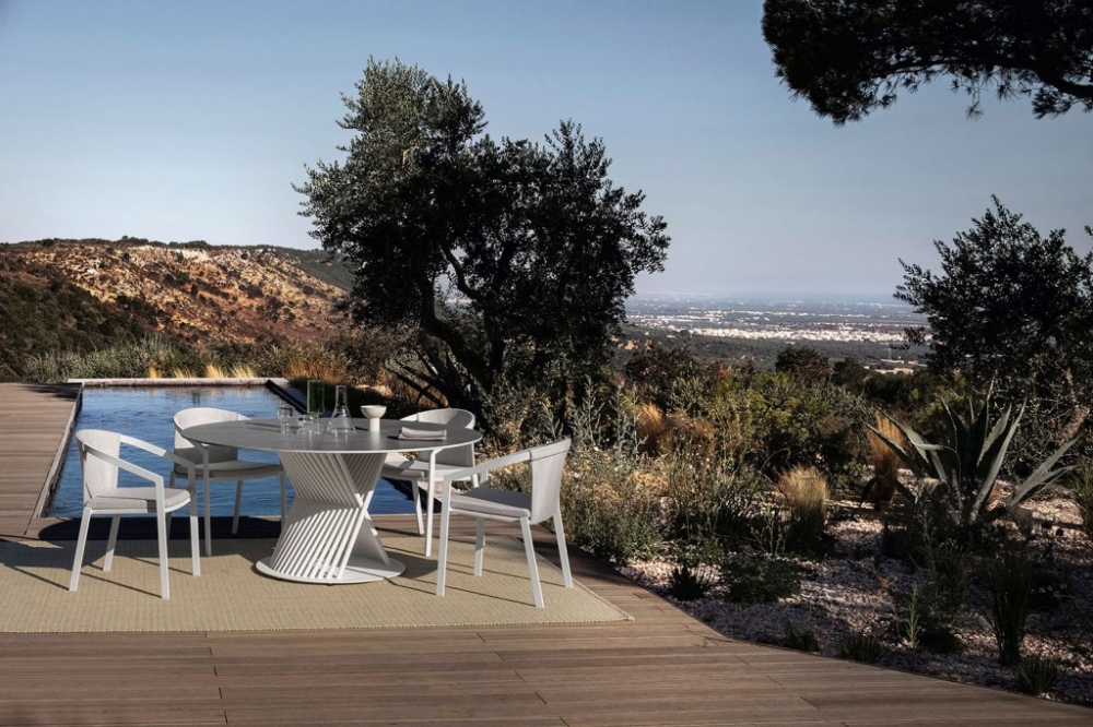 De zeer slanke Push eettafel maakt onderdeel uit van een complete productfamilie waaronder verder sofa's, stoelen en krukken.