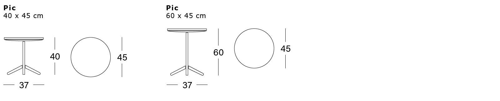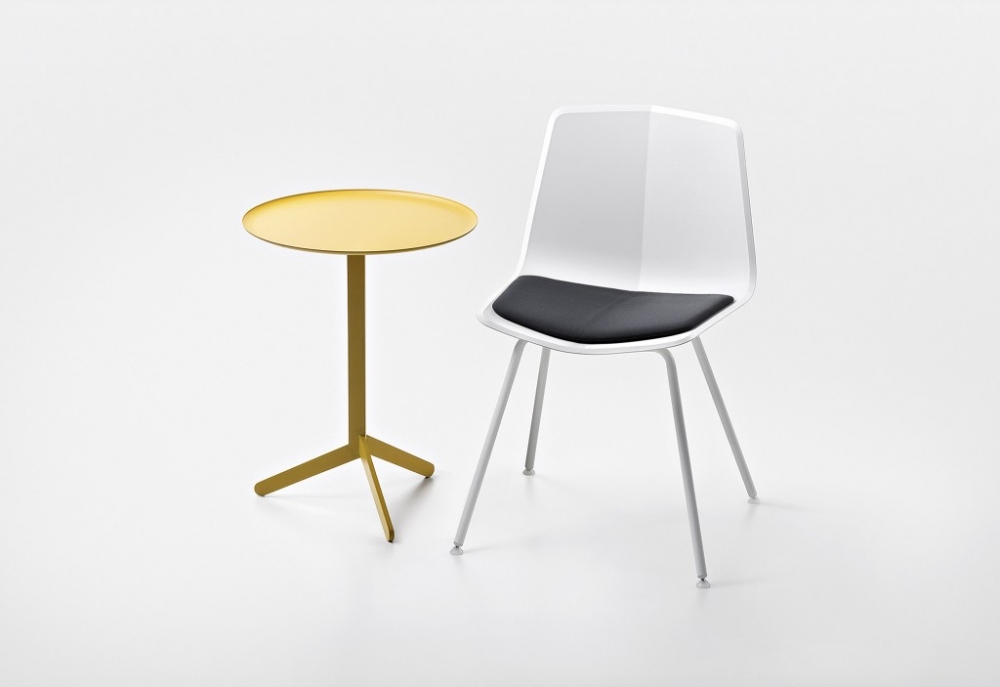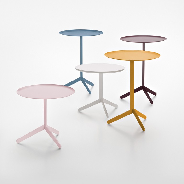 De bijzettafel Pic heeft een kenmerkend driepootsonderstel van poedergecoat staal.
