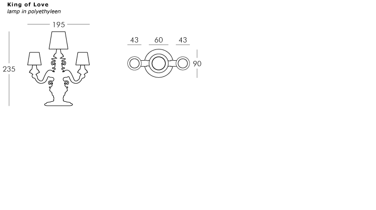 King of Love is een zeer imposante staande lamp met een hoogte van maar liefst 235cm. De breedte is 195cm.