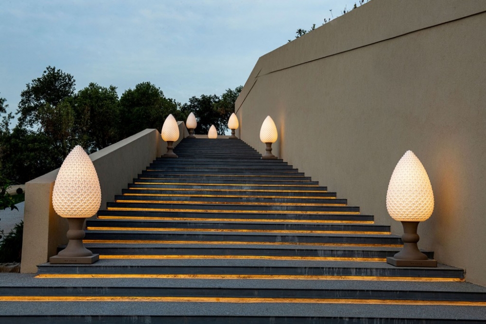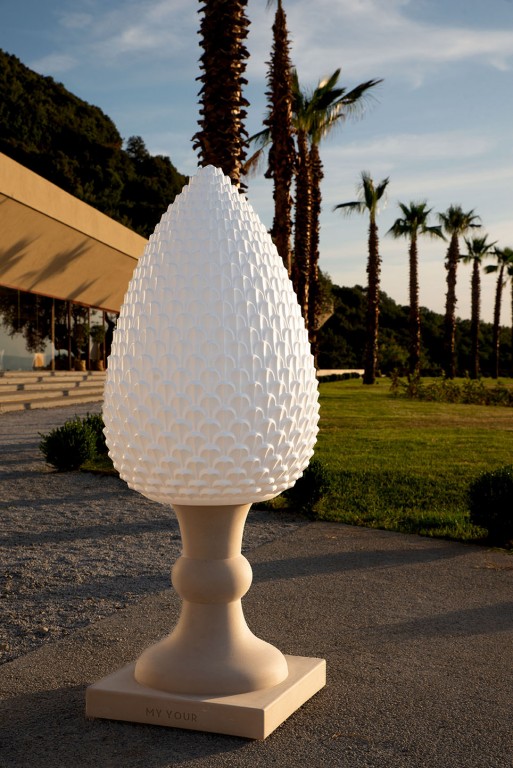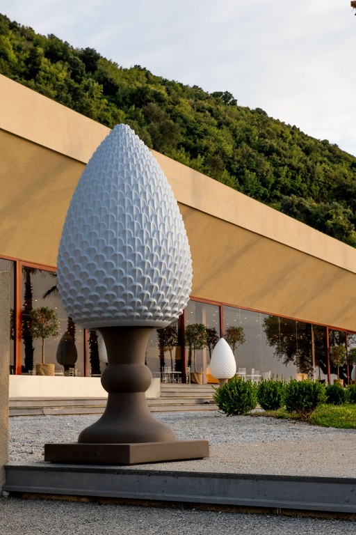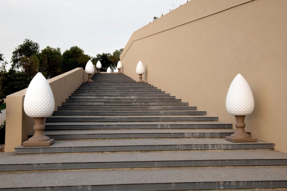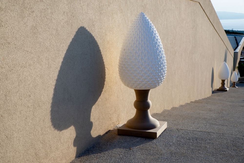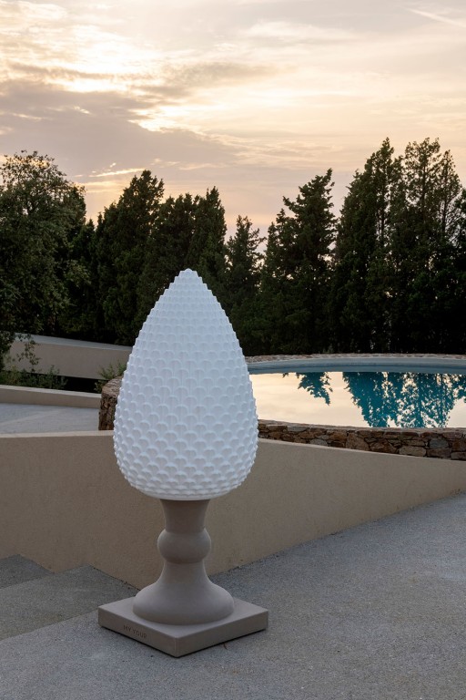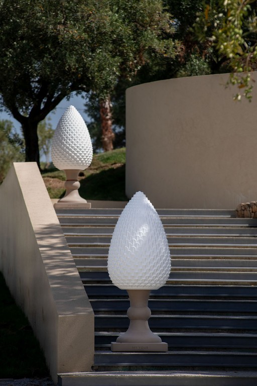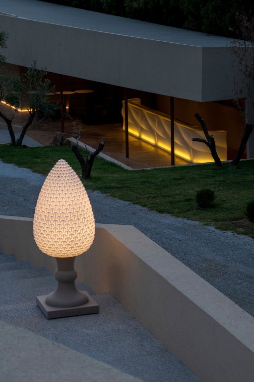 Gemaakt van Poleasy, is Pina een grote lamp die bestaat uit twee delen: de dennenappel, die kan worden verlicht,
