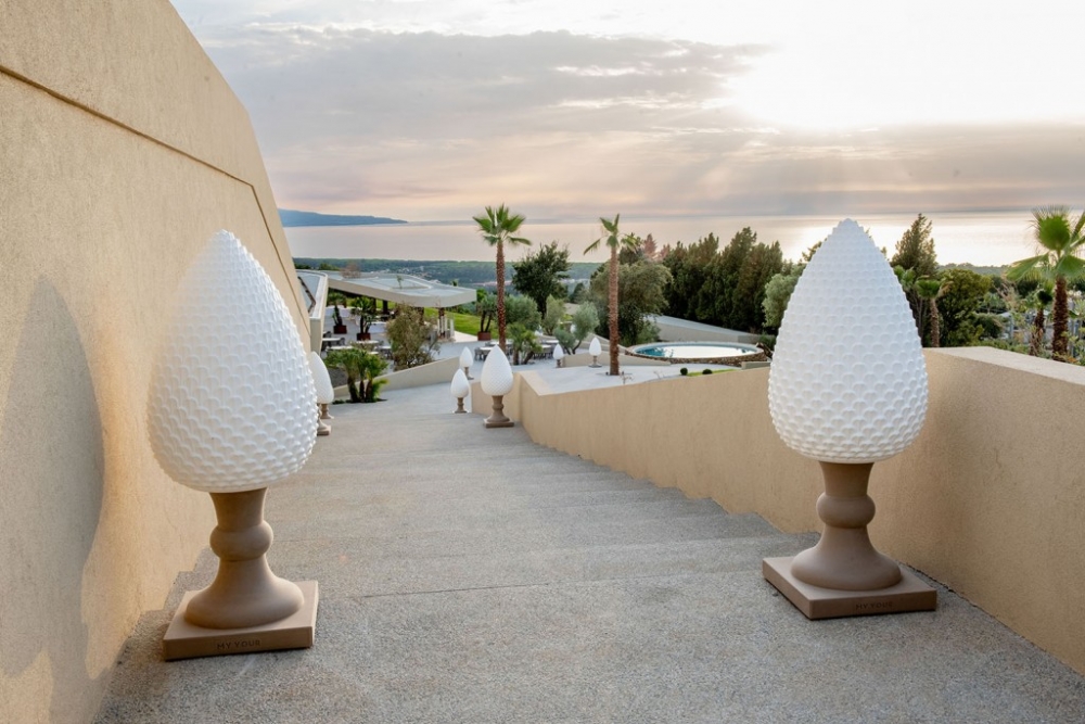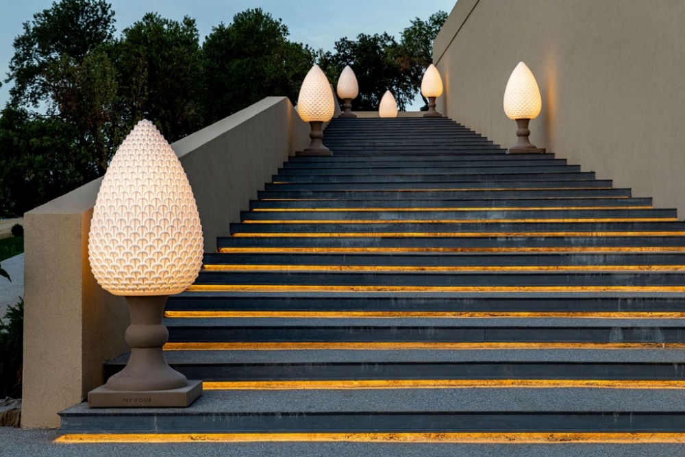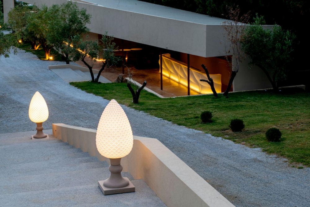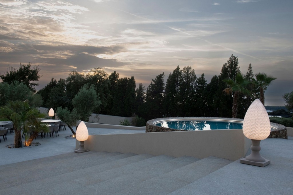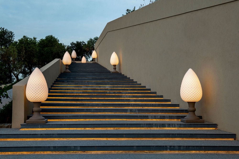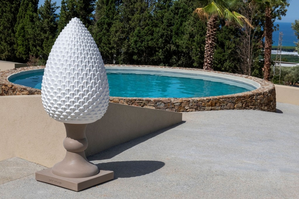 Gemaakt van Poleasy, is Pina een grote lamp die bestaat uit twee delen: de dennenappel, die kan worden verlicht,