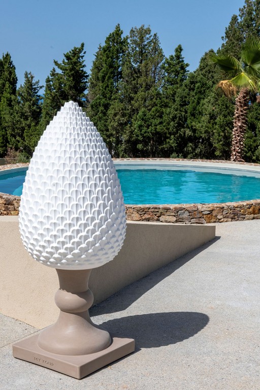 door het iconische archetype van de Siciliaanse dennenappel, trekt deze creatie onmiddellijk de aandacht dankzij zijn