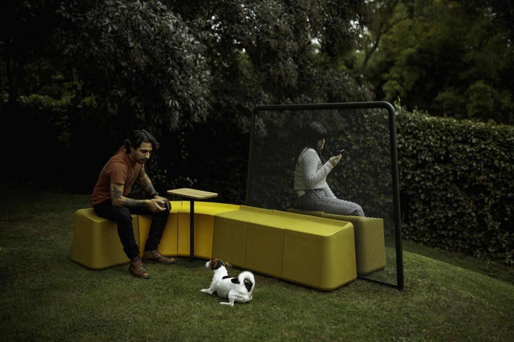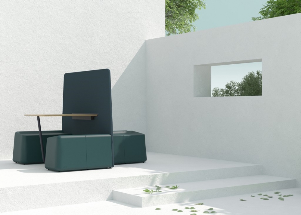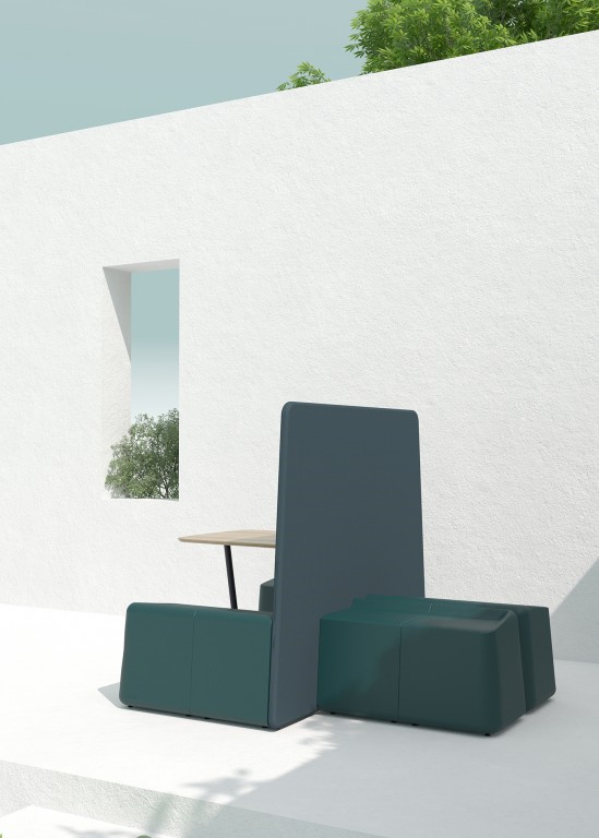 Deze schermen maken onderdeel uit van de Sarek productfamilie, een collectie met als basis schakelbare zitelementen met een zacht kunststof oppervlak. Dit materiaal genaamd Flexiskin® is uniek en revolutionair vervaardigd van polyurethaan schuim van plantaardige afkomst.