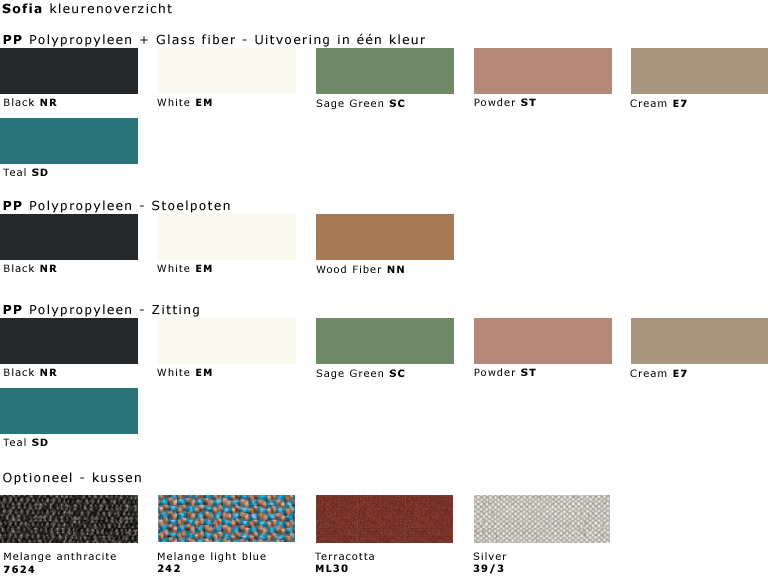 Sofia is een volledig kunststoffen stoel. De zitschaal is vervaardigd van polypropyleen.