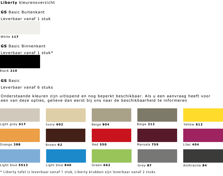Liberty is leverbaar in de volgende modellen: