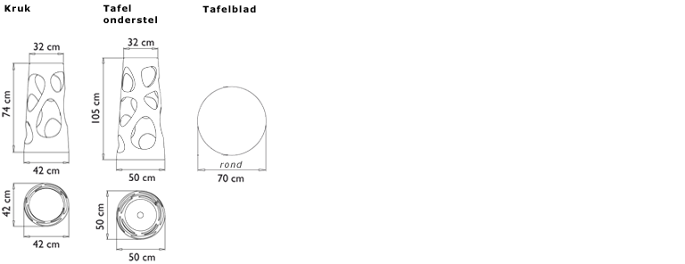 Kruk L, ø 42cm H = 74cm.