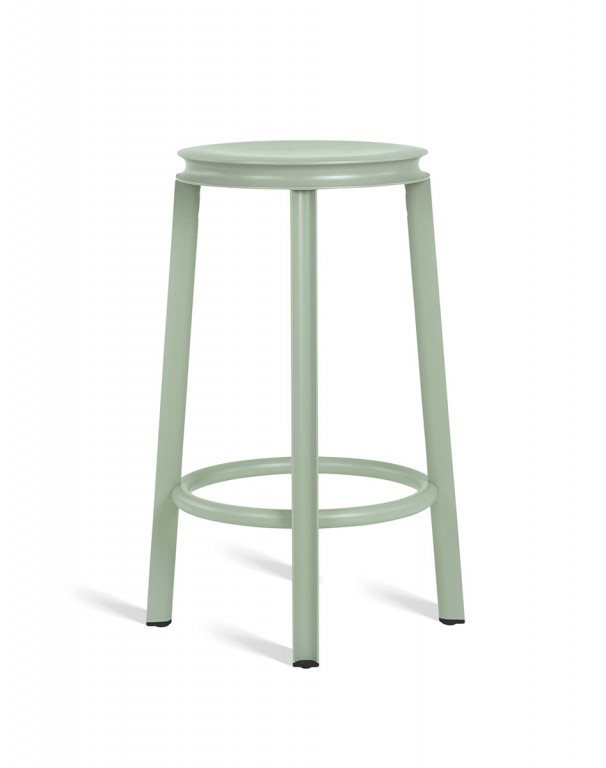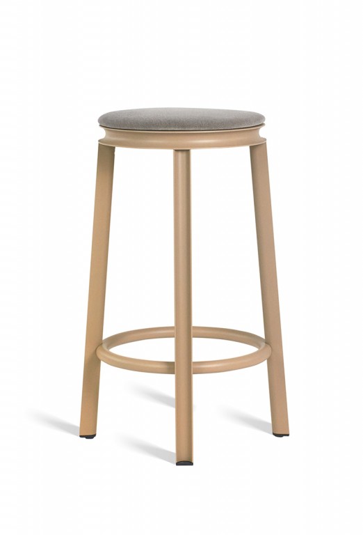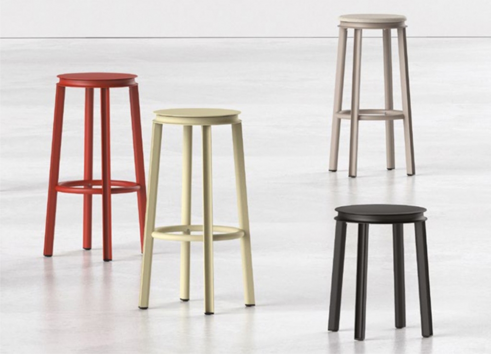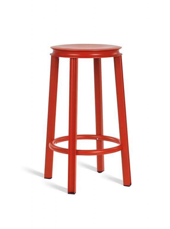 Het belangrijkste ontwerpkenmerk doet denken aan een robuust stuk gereedschap, maar de subtiel uitgeholde frame-elementen geven het een lichte en elegante uitstraling zoals alleen aluminium dat kan. De ronde zitting draagt bij aan de eigentijdse uitstraling, terwijl de optie voor een gestoffeerde zitting tegemoetkomt aan diverse voorkeuren.