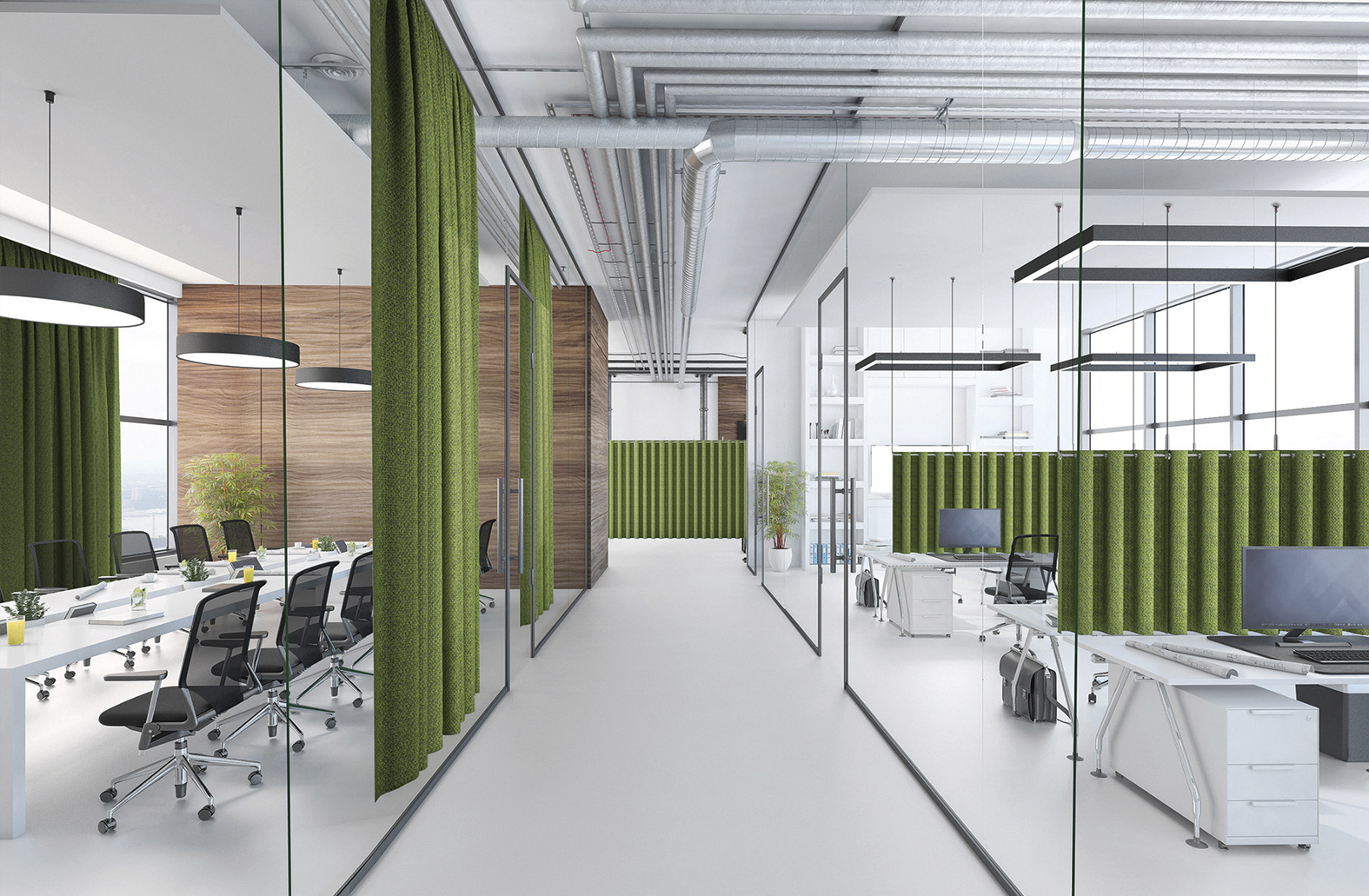 De interactie tussen de Fiber weefsels en de lucht eromheen stelt ons in staat om de nagalmtijd te beheersen. Van belang hierbij is dat er per ruimte aandacht wordt besteed aan de aanwezige akoestische eigenschappen. Voor het bepalen van de juiste toepassing zijn met name de postie in de ruimte, de oppervlaktestructuur van de toe te passen stof en de afstand tot de wanden van belang.