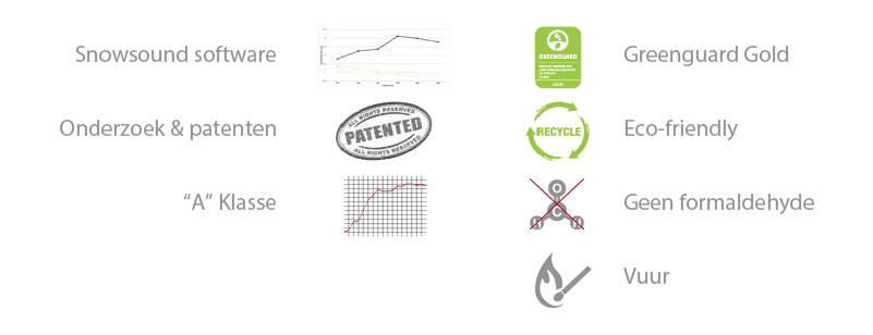 De Snowsound Fiber stoffen zijn volledig vervaardigd van zeer hoogwaardige akoestische polyester vezels die brandvertagend zijn en voor 100% gerecycled kunnen worden. Naast de vele andere voordelen is het met de Snowsound-Fiber stoffen mogelijk om klasse A te bereiken voor geluidsabsorptie.