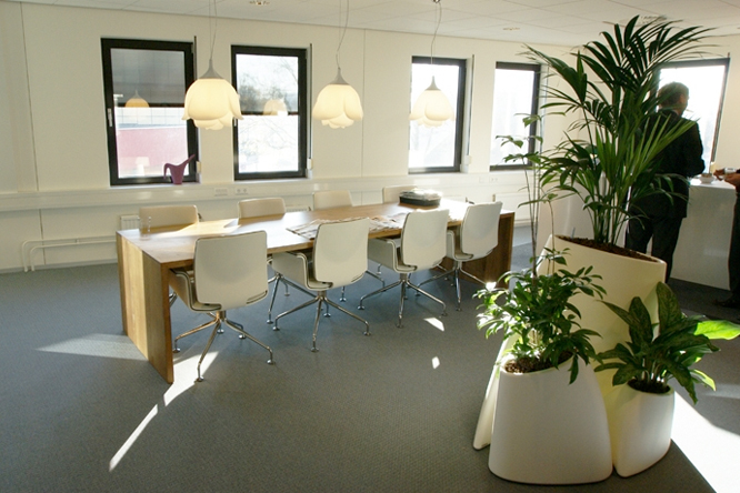 Kamer van Koophandel te LeeuwardenBij de Kamer van Koophandel te Leeuwarden hebben we een groot aantal producten van ons geplaatst. Onder andere is er gebruik gemaakt van de Stratos stoel in combinatie met de Plato tafel. De Nefos lampen zorgen voor de verlichting, waarbij de planten in de Tao potten van MyYour staan. |